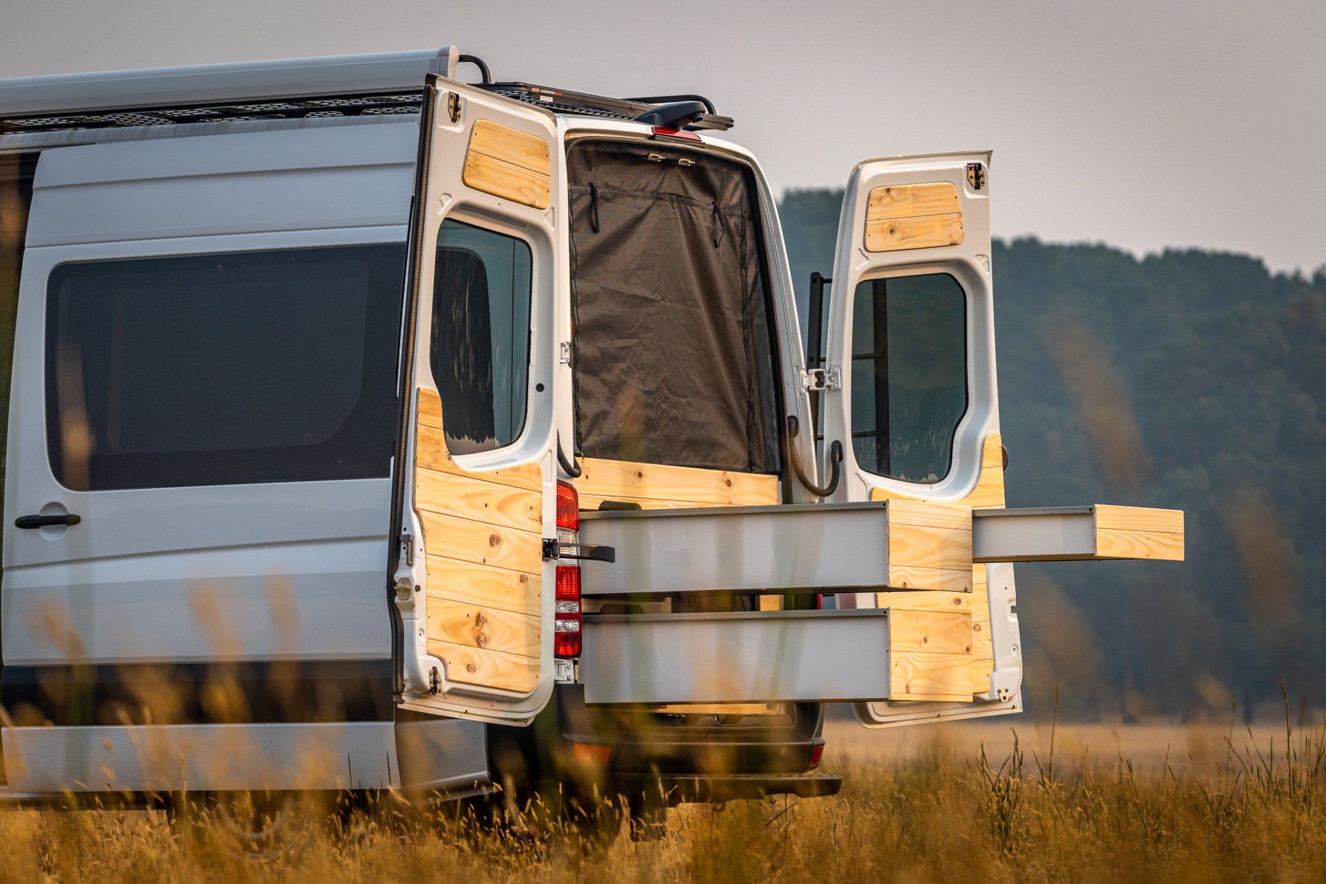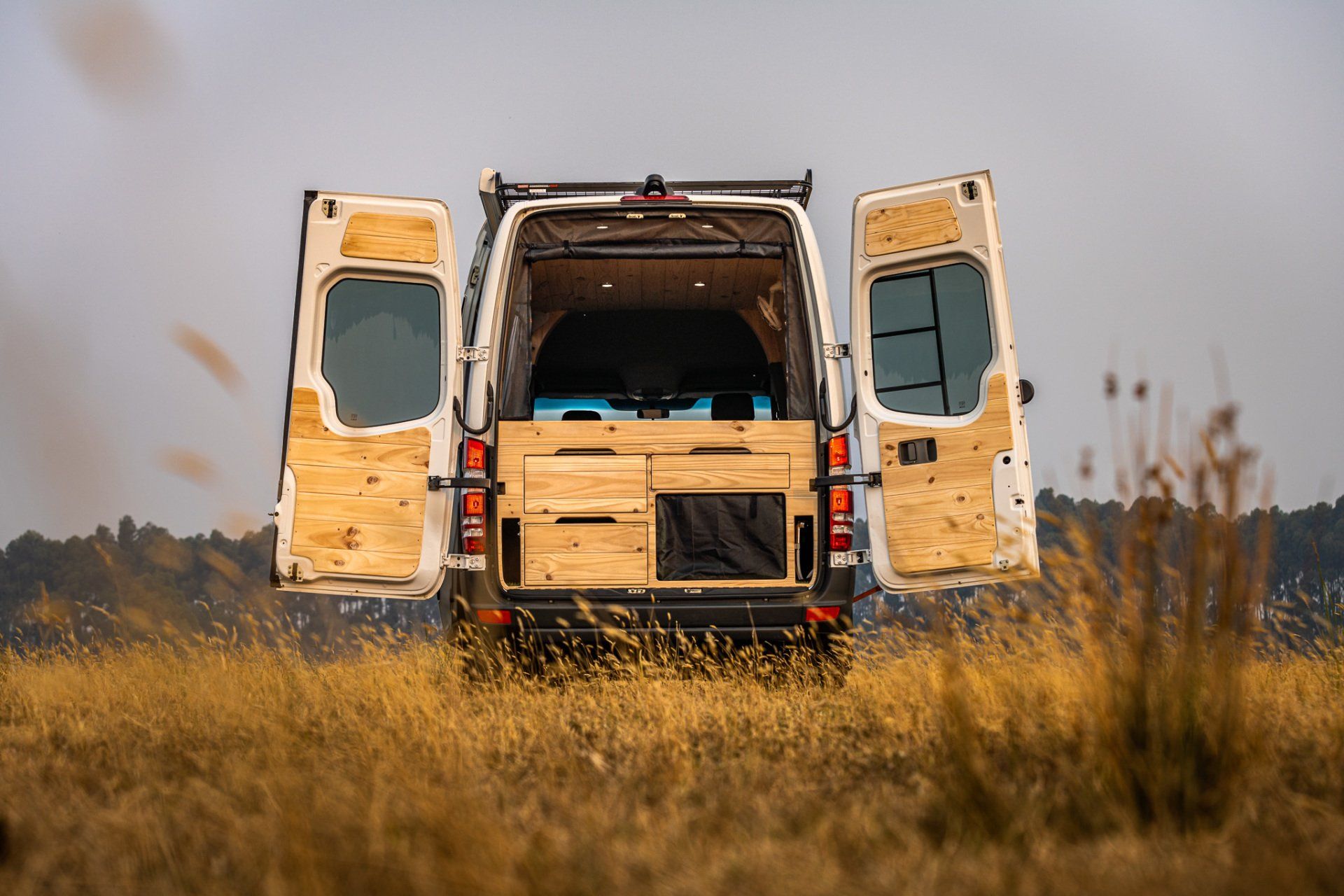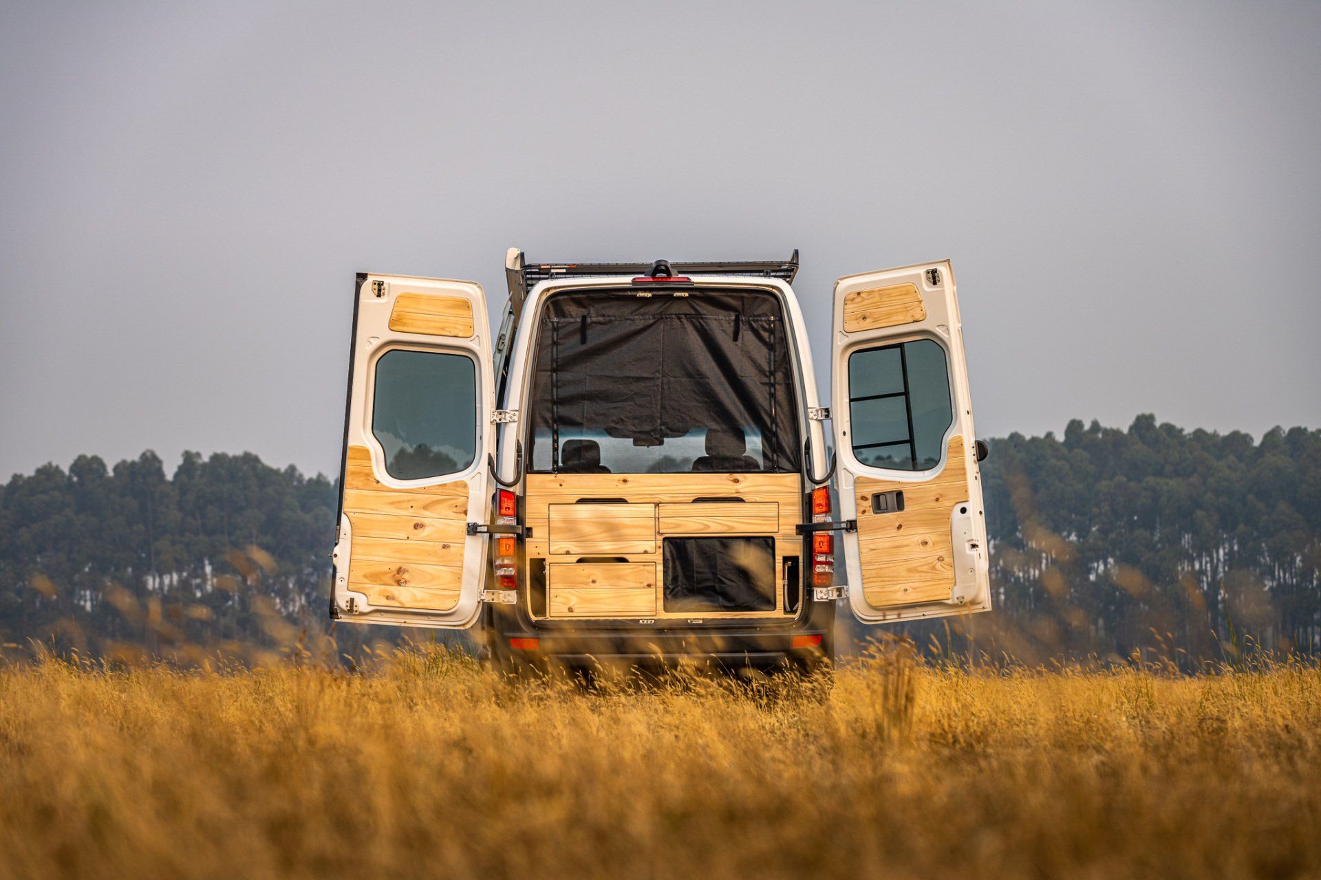 Bringing nature inside with clean, light weight, pine lined walls, roof and doors. Creating the feel of a cozy wood cabin inside the van. Featuring a one piece curved window frame and curved corner pillar moldings.
